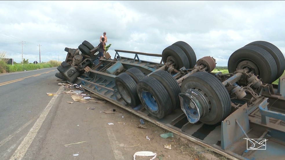 Carreta tomba na BR-316 e tem mercadoria saqueada
