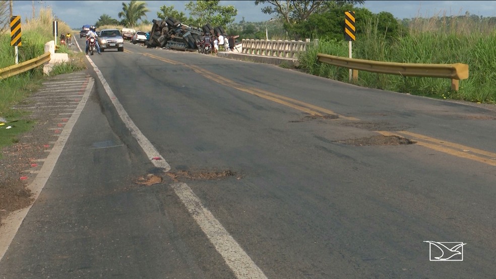 De acordo com a Polícia Rodoviária Federal (PRF), o acidente aconteceu por volta das 16h do domingo (17). A carreta tombou quanto o motorista tentou desviar de um buraco na pista, mas acabou perdendo o controle do veículo após bater em um dos buracos.