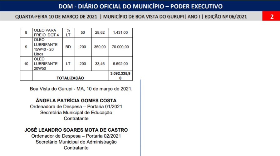 Ainda de acordo com as informações, a empresa vai abastecer a frota de veículos oficiais até 31 de dezembro desse ano pelo valor total de R$ 3.092.335,90 mil.