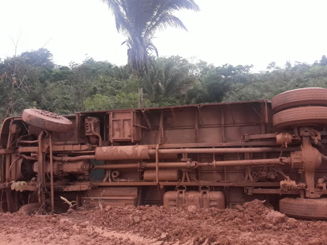 Na tarde desta segunda feira (25), devido as péssimas condições da rodovia um ônibus escolar capotou entre Estiva e Livramento ambos no município de Carutapera.