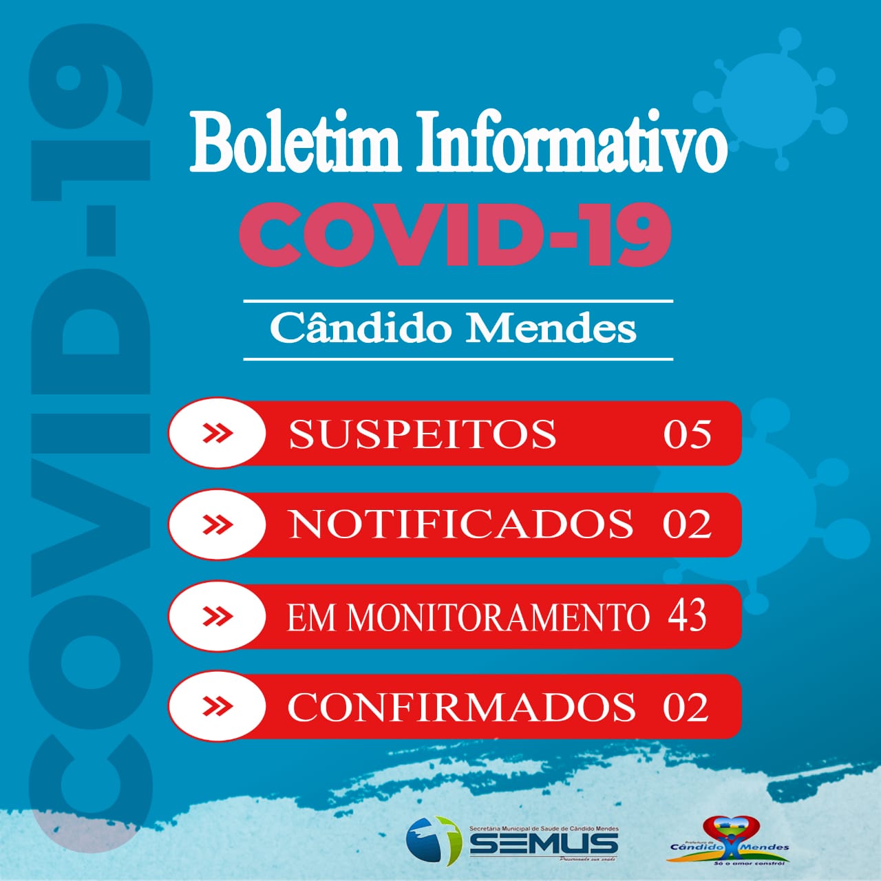 A Secretaria Municipal de Saúde de Cândido Mendes confirmou na tarde desta sexta-feira (01) dois caso de Covid-19 na cidade.