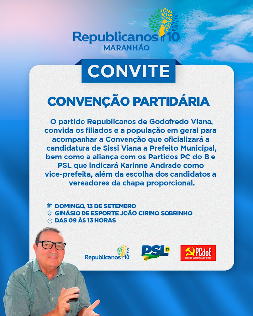 Uma grande festa política/partidária marcará, no próximo domingo, dia 13 de setembro, a convenção que homologará a candidatura à reeleição do prefeito Sissi Viana, do município Godofredo Viana, na região Leste maranhense.